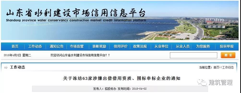 近日,山東省住建廳發(fā)現(xiàn)63家企業(yè)在水利建設市場招標投標活動中涉嫌出借借用資質(zhì)、圍標串標。